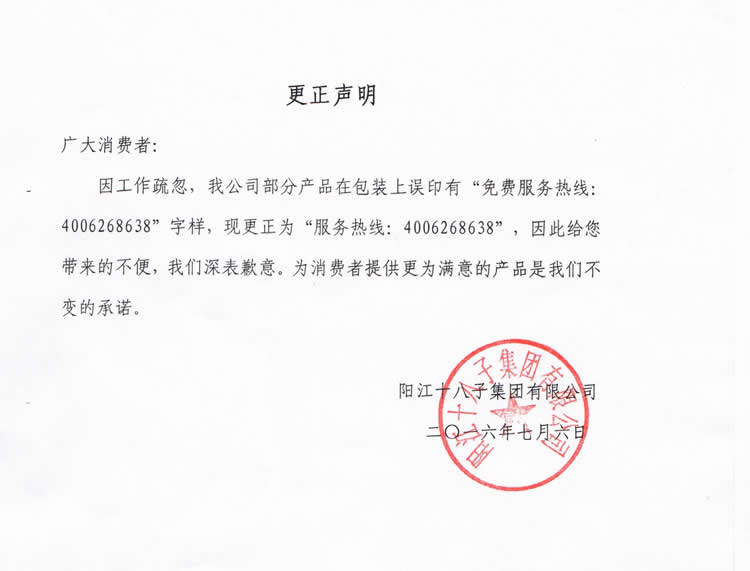 關(guān)于我司產(chǎn)品包裝信息更正聲明
