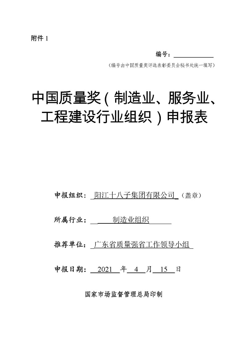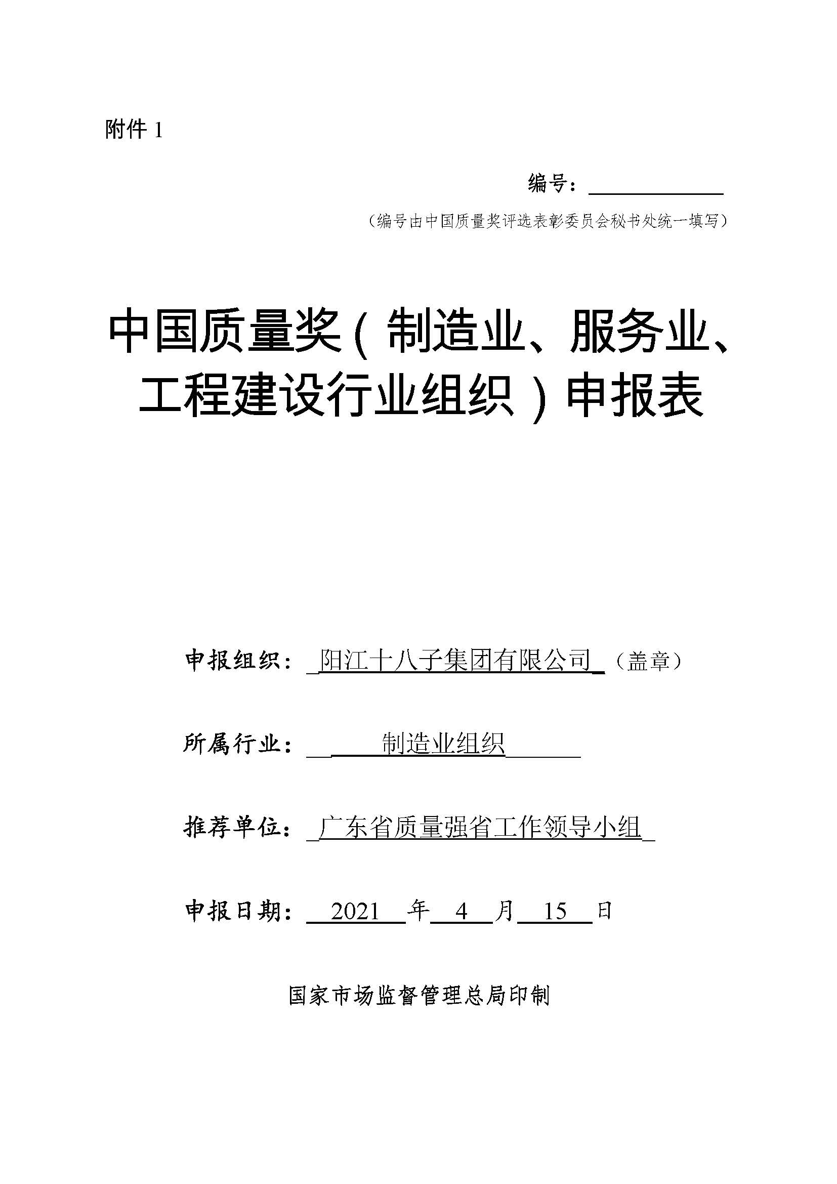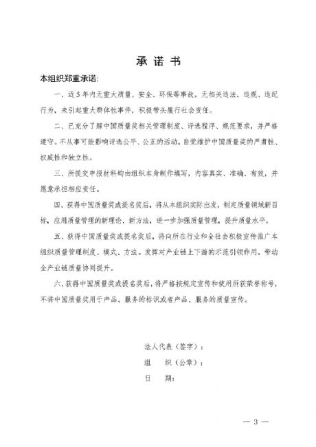 關(guān)于中國(guó)質(zhì)量獎(jiǎng)申報(bào)表公示